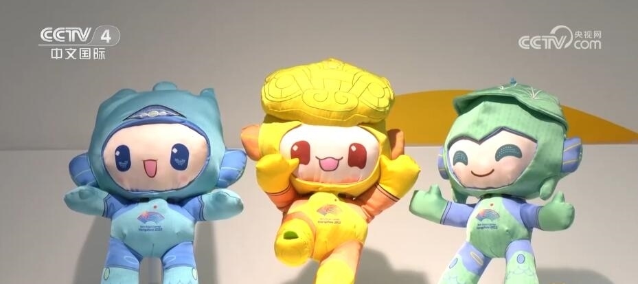亞運會特許商品零售店店長 陳晨:賣得最好的就是亞運吉祥物三寶。補(bǔ)貨上來之后,立馬空掉,然后再補(bǔ)、再空,再補(bǔ)、再空,我們基本每天最少保證一次的補(bǔ)貨量。