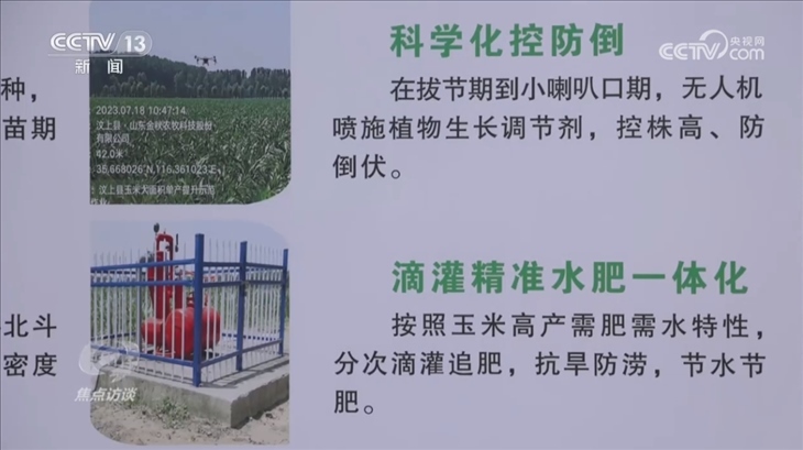 郭波波所在的汶上縣作為國家玉米單產(chǎn)提升整建制推進(jìn)縣,有5萬畝玉米單產(chǎn)提升示范區(qū),今年第一次試驗(yàn)推廣密植滴灌高產(chǎn)精準(zhǔn)調(diào)控技術(shù)。種植戶們擔(dān)心密植后的玉米出現(xiàn)營養(yǎng)不良和倒伏,這項(xiàng)技術(shù)就是要解決這個(gè)痛點(diǎn)。通過鋪在地上的滴管,對(duì)玉米進(jìn)行水肥一體化滴灌,讓玉米“少食多餐、食量均勻”,既節(jié)肥節(jié)水,又能補(bǔ)充足夠的營養(yǎng),從而增加玉米的抗倒伏能力。