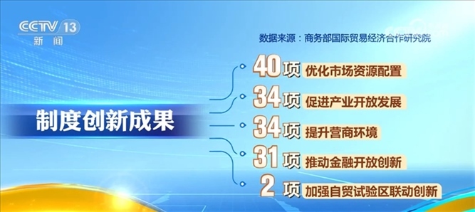 302項(xiàng)制度創(chuàng)新成果中,還有40項(xiàng)為優(yōu)化市場(chǎng)資源配置、34項(xiàng)為促進(jìn)產(chǎn)業(yè)開(kāi)放發(fā)展、34項(xiàng)為提升營(yíng)商環(huán)境、31項(xiàng)為推動(dòng)金融開(kāi)放創(chuàng)新、2項(xiàng)為加強(qiáng)自貿(mào)試驗(yàn)區(qū)聯(lián)動(dòng)創(chuàng)新。一項(xiàng)項(xiàng)制度創(chuàng)新正激發(fā)出市場(chǎng)活力。