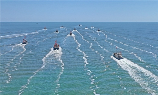 進(jìn)入九月,北緯35度以北的黃渤海海域結(jié)束了為期4個月的伏季休漁期。在大連各漁港碼頭,7800余艘漁船競相揚帆起航,開啟秋汛捕撈季,迎接豐收到來。