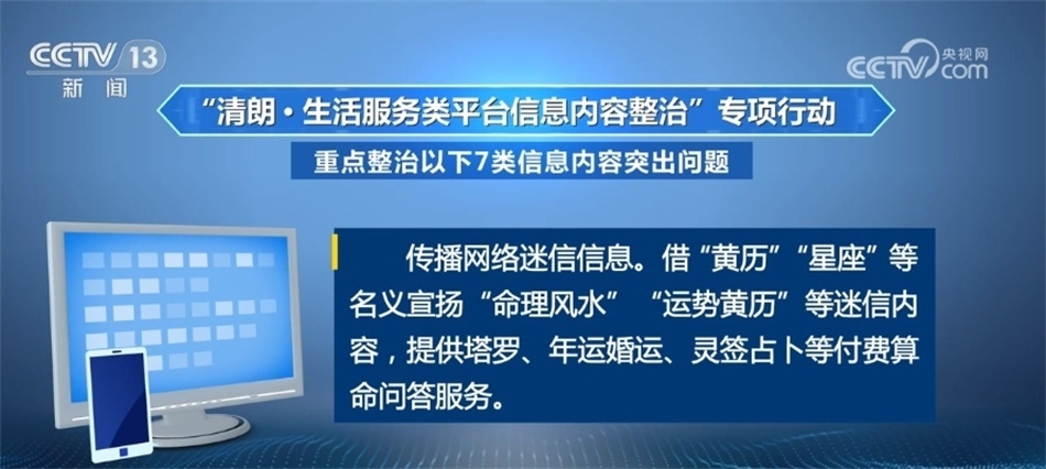 此次專項行動覆蓋團(tuán)購評價、婚戀交友、搜索引擎、影視點評、天氣日歷、旅游出行、網(wǎng)絡(luò)購物、地圖導(dǎo)航、本地生活、運(yùn)動健康、實用工具等各類生活服務(wù)平臺,重點整治以下7類信息內(nèi)容突出問題。
