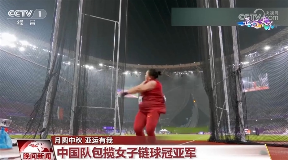9月29日晚的田徑賽場,女子鏈球決賽中,中國隊35歲老將王崢以71米53的成績獲得冠軍,趙杰獲得亞軍。