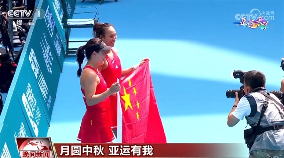 網(wǎng)球賽場,女子單打決賽在兩位中國選手鄭欽文和朱琳之間展開,最終鄭欽文以2比0擊敗了隊友朱琳,贏得女子單打的金牌。