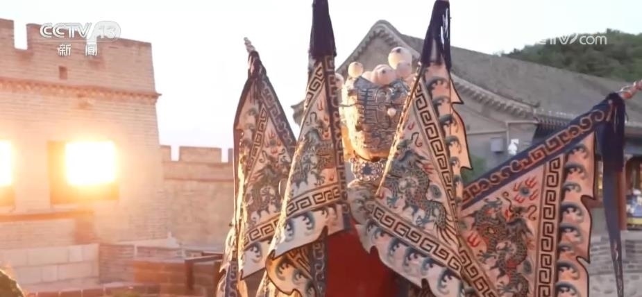 除了觀賞之外,八達(dá)嶺長(zhǎng)城還為游客提供了豐富的消費(fèi)體驗(yàn)。在文化街區(qū)里,正在上演《夢(mèng)回長(zhǎng)城,八方來(lái)鶴》為主題的演出,游客們可以和京劇、地方歌舞的表演者互動(dòng)。絢爛的燈光表演則為古老的長(zhǎng)城增添了不少現(xiàn)代感與時(shí)尚感。穿上漢服,買(mǎi)一面國(guó)旗,品嘗一下長(zhǎng)城的文創(chuàng)雪糕,市集小店里洋溢著濃濃的煙火氣。
