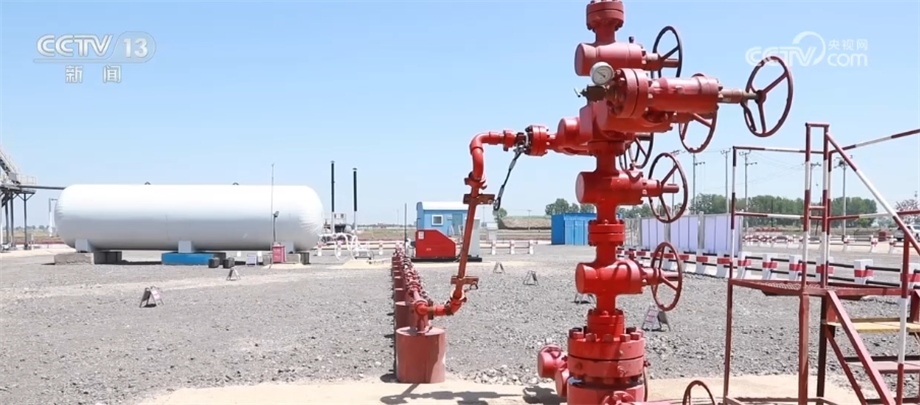 總臺記者 閆崎峰:可以看到我旁邊的這些管線上凝結(jié)了厚厚的白霜,管子里運輸?shù)木褪堑蜏匾簯B(tài)下的二氧化碳。這些二氧化碳被這些高壓泵送入距離我腳下4000多米的原油層中。加入了二氧化碳的原油會變得蓬松、流動性好,便于采集,這種方式可以提高至少18%的采收率。