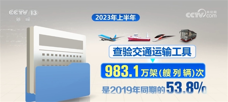 據(jù)國家移民管理局統(tǒng)計,2023年上半年,全國移民管理機構共查驗出入境人員1.68億人次,是2019年同期的48.8%,其中內(nèi)地居民8027.6萬人次,港澳臺居民7490.3萬人次,外國人843.8萬人次(不含邊民);查驗交通運輸工具983.1萬架(艘、列、輛)次,是2019年同期的53.8%,其中,飛機20.4萬架次、船舶19.1萬艘次、火車4.4萬列次、汽車939.2萬輛次。