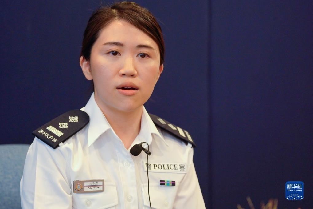 香港警務(wù)處支援科高級(jí)督察游凱茵接受采訪(4月19日攝)。新華社記者 龍鏡伊 攝