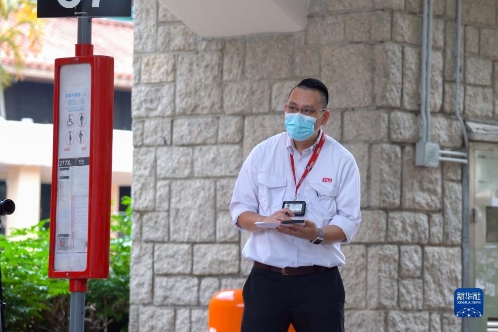 香港九巴總車(chē)務(wù)督察謝偉彬在工作中(5月12日攝)。新華社記者 龍鏡伊 攝