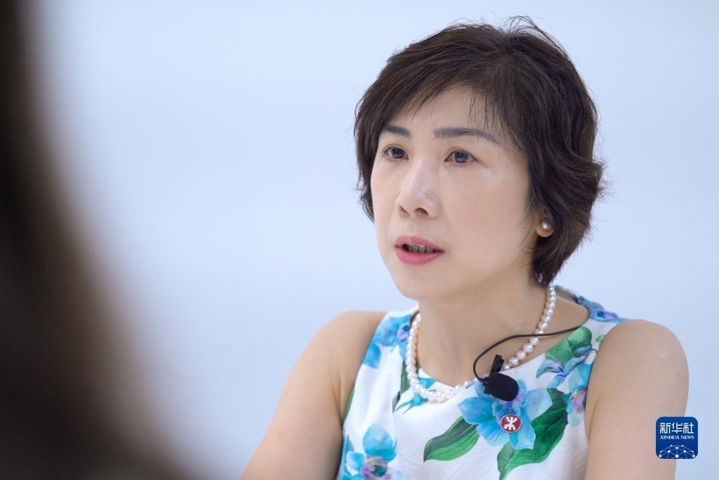 港鐵公司總經(jīng)理(市務(wù)及客戶(hù)體驗(yàn))梁靜雯接受采訪(7月12日攝)。新華社記者 龍鏡伊 攝