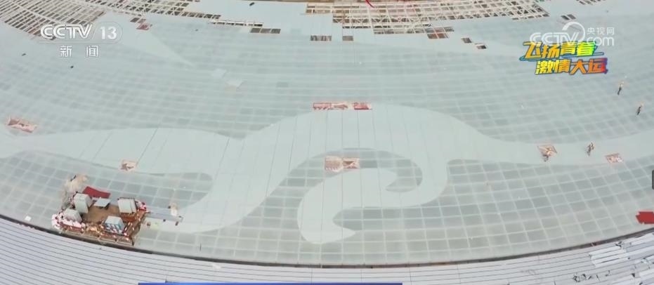 總臺記者 陳佳穎:放大了270萬倍的太陽神鳥,要讓它“騰飛”在主體育場的穹頂并不容易。12540塊彩釉玻璃,每一塊都要生成一個獨特的二維碼,拼裝時才能準(zhǔn)確找到安裝位置。
