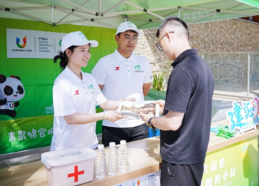 成都的大街小巷,現(xiàn)在隨處可見(jiàn)大運(yùn)會(huì)元素和標(biāo)識(shí)景觀。其中,志愿服務(wù)小站是一道獨(dú)特的風(fēng)景線(xiàn)。28歲的志愿者張思宇這幾天正為來(lái)往游客提供咨詢(xún)等服務(wù)。