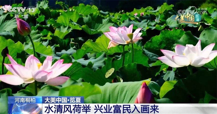 盛夏時節(jié),河南桐柏縣的兩萬余畝荷田迎來了一年中最美的季節(jié)。從空中俯瞰,藍(lán)天白云之下,青翠的稻田與荷田相映成趣,沿著彎曲的河流交錯分布,青山依依、碧水潺潺、煙波浩渺、荷葉田田,美不勝收。一株株荷花裊娜地開著,以粉紅色為主,或鵝黃或潔白,一幅絕美的鄉(xiāng)村生態(tài)畫卷徐徐展開。據(jù)了解,目前桐柏荷花主要有藕蓮、花蓮等多個品種類群。當(dāng)?shù)卣e極探索農(nóng)旅融合發(fā)展模式,在開展觀光旅游度假的同時,蓮產(chǎn)業(yè)已成為群眾增收的新途徑。