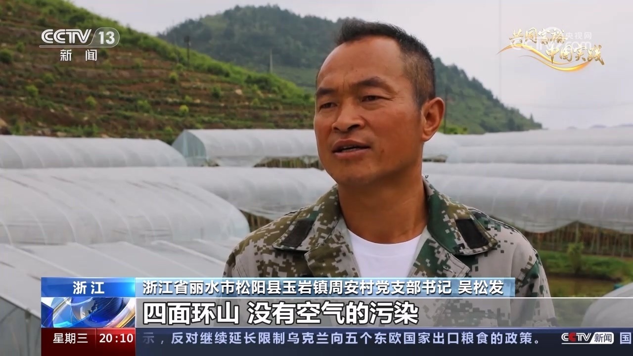 浙江省麗水市松陽縣玉巖鎮(zhèn)周安村黨支部書記 吳松發(fā):環(huán)境因為海拔高、四面環(huán)山、沒有空氣的污染,就是說氣候溫差比較大,種出來的番茄品質好,酸酸甜甜的。我們原先是賣3塊5左右一斤,(現(xiàn)在)賣到5塊至6塊錢一斤。