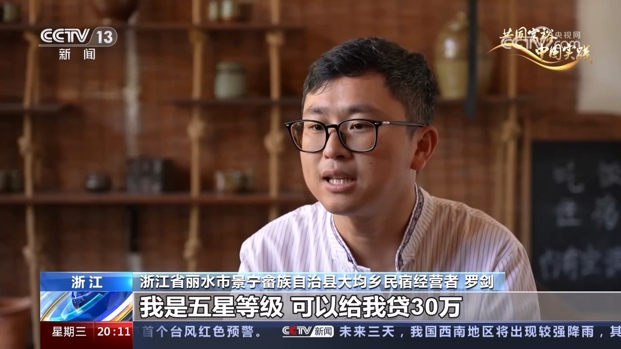 浙江省麗水市景寧畬族自治縣大均鄉(xiāng)民宿經營者 羅劍:以我的個人(生態(tài)信用)等級,我是五星等級,可以給我貸30萬,而且我了解了年利率,它是3.85%,算起來是最低的,所以說我就去貸了。