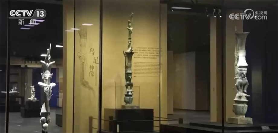 時(shí)隔37年再聚首 三星堆博物館新館再現(xiàn)完整倒立鳥足頂尊神像