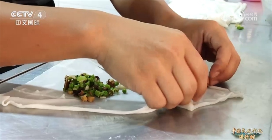 除了“射手王”,網(wǎng)友們還給他起了一個(gè)外號(hào)叫“卷粉王”。今年34歲的董永恒在縣城開了一家小店,售賣當(dāng)?shù)貍鹘y(tǒng)特色美食卷粉。在球場(chǎng)上他腳底利索,沒想到手上更利落,董永恒一天要包1000多個(gè)卷粉。
