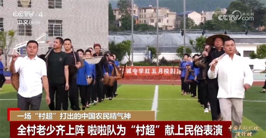 央視網(wǎng)消息:黨的二十大報(bào)告指出,中國(guó)式現(xiàn)代化是物質(zhì)文明和精神文明相協(xié)調(diào)的現(xiàn)代化。在廣大農(nóng)村地區(qū),農(nóng)民精神文化生活狀況是鄉(xiāng)村振興乃至經(jīng)濟(jì)社會(huì)發(fā)展全局的重要衡量指標(biāo)。近年來,“土味”十足的“村BA”“村超”等農(nóng)民自發(fā)舉行的體育賽事火爆全網(wǎng)。正在貴州榕江舉行的“村超”本周六(7月29日)將迎來總決賽,今天的系列節(jié)目《中國(guó)式現(xiàn)代化進(jìn)行時(shí)》,我們跟隨記者的鏡頭去看看“村超”的比賽盛況。