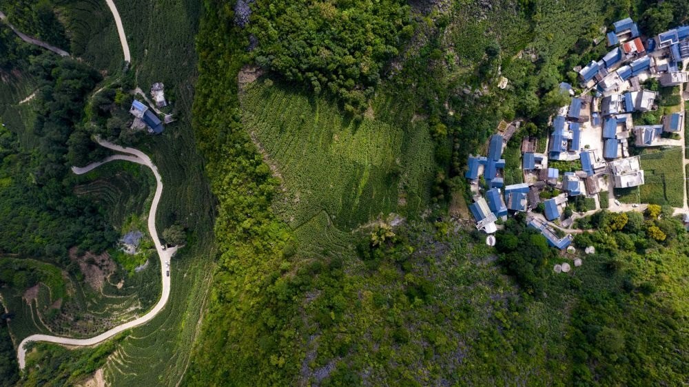 這是7月27日拍攝的木者村“摸石谷”中建成的“三保”臺(tái)地。新華社記者 陳欣波 攝