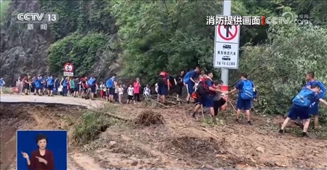 8月2日上午,現(xiàn)場(chǎng)總指揮決定護(hù)送自愿離開(kāi)的被困群眾進(jìn)行撤離。在撤離的隊(duì)伍中,有38名來(lái)自新疆參加北京游學(xué)的孩子,他們最小的6歲,平均年齡也只有8歲。為了保障轉(zhuǎn)移時(shí)的安全,撤離線路選擇了相對(duì)安全的盤山公路進(jìn)行。途中經(jīng)過(guò)落石塌方險(xiǎn)區(qū)的時(shí)候,消防員們依次排開(kāi),在斷崖旁形成人墻,用身體筑起一條防線。遇到水流,消防員們把孩子們抱著傳遞到安全位置再繼續(xù)前行。