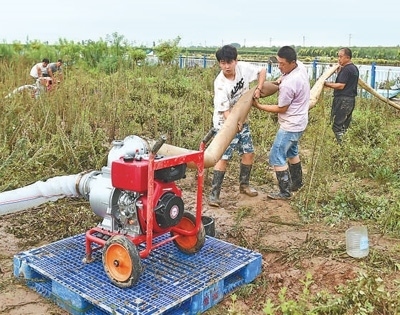 日前,河北省邢臺(tái)市南和區(qū)農(nóng)業(yè)農(nóng)村局農(nóng)技推廣員幫助受災(zāi)養(yǎng)殖戶(hù)進(jìn)行魚(yú)塘合理排澇。趙永輝攝(人民視覺(jué))