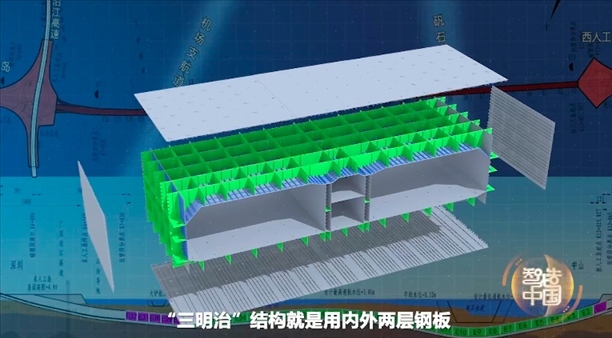 顧名思義,“三明治”結(jié)構(gòu)就是用內(nèi)外兩層鋼板造出巨型鋼殼,然后在兩層鋼板的隔艙之間進(jìn)行混凝土澆筑。