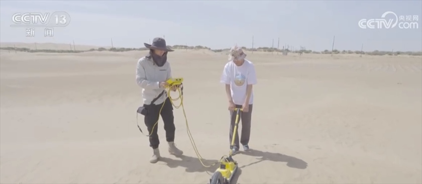 總臺央視記者 任梅梅:這里是吐魯番盆地的荒漠地區(qū),在我身后科考隊(duì)員剛剛架設(shè)起了這樣一座自動氣象站,配合空中無人機(jī)和衛(wèi)星遙感等一系列科技手段,可以實(shí)現(xiàn)“天空地一體化”監(jiān)測。