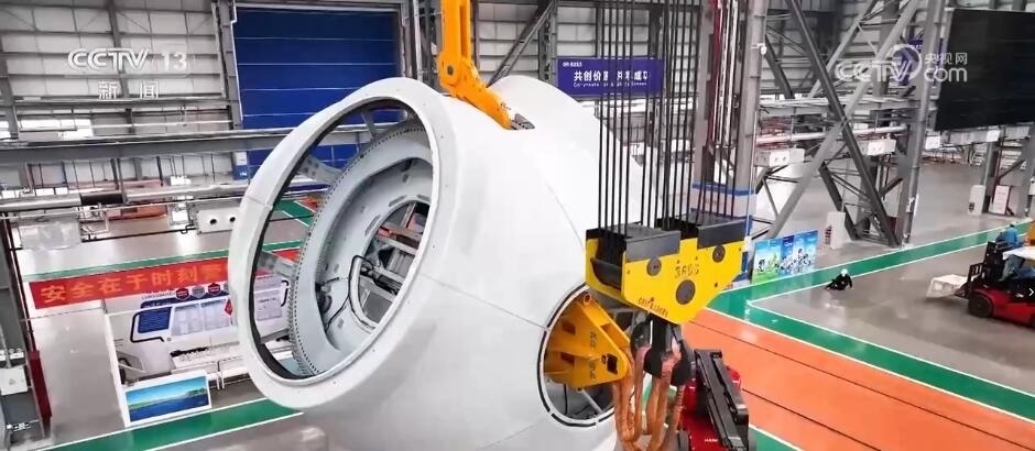 總臺記者 趙雄:在現(xiàn)場我們看到,生產(chǎn)一臺機組所需要的輪轂、發(fā)電機、傳動裝置等各個部件都匯聚在這里,而這些部件都來自不同的供應商。