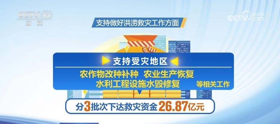 在支持做好洪澇救災(zāi)工作方面,分3批次下達(dá)救災(zāi)資金26.87億元,支持受災(zāi)地區(qū)開展農(nóng)作物改種補種、農(nóng)業(yè)生產(chǎn)恢復(fù)、水利工程設(shè)施水毀修復(fù)等相關(guān)工作。