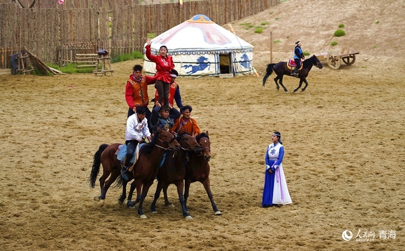 大型實(shí)景馬術(shù)演藝劇印象茶卡之《草原英雄-成吉思汗》。人民網(wǎng)記者 楊啟紅攝