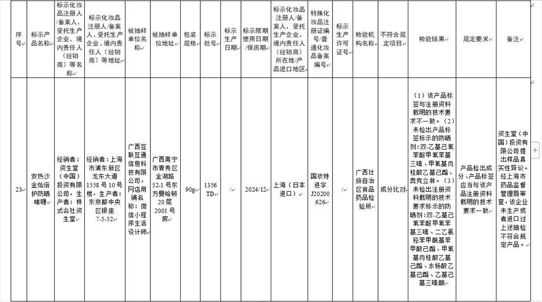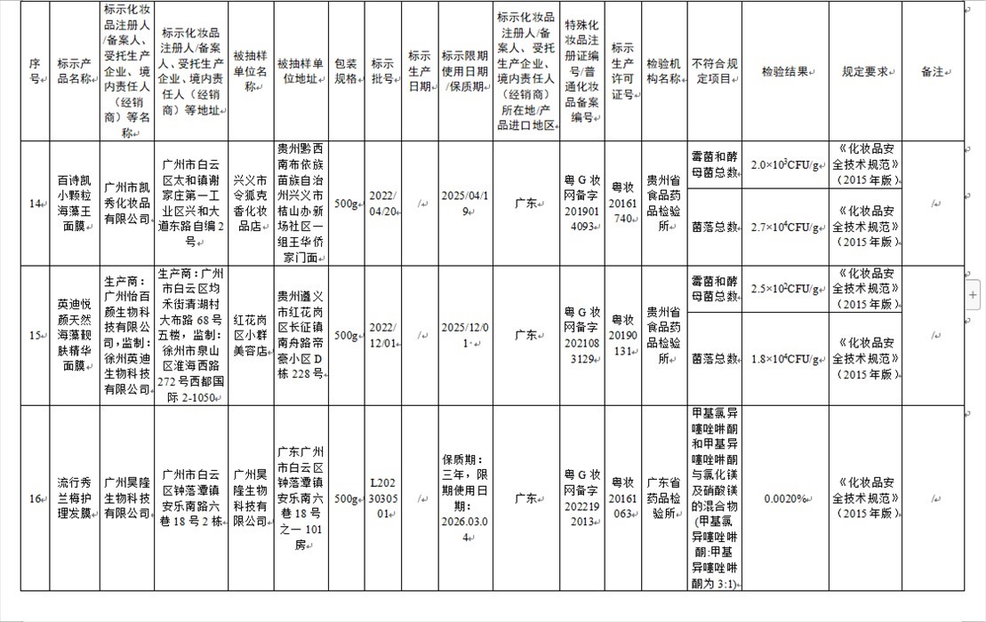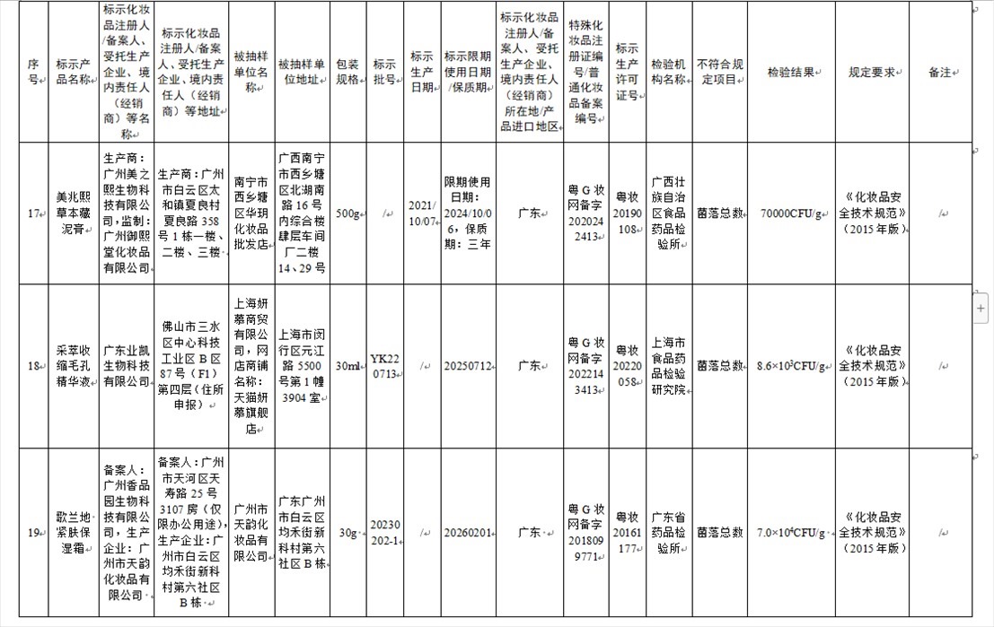 國(guó)家藥監(jiān)局網(wǎng)站今天發(fā)布通告稱(chēng),在2023年國(guó)家化妝品抽樣檢驗(yàn)工作中,經(jīng)重慶市食品藥品檢驗(yàn)檢測(cè)研究院等單位檢驗(yàn),產(chǎn)品標(biāo)簽標(biāo)示為廣州市天科化妝品有限公司生產(chǎn)的天科染發(fā)膏(自然黑)等23批次化妝品不符合規(guī)定(見(jiàn)下圖表格)。