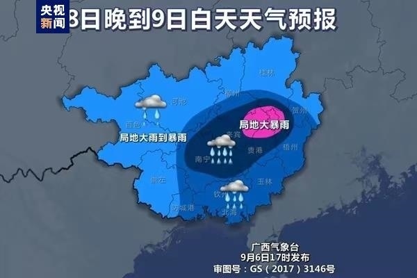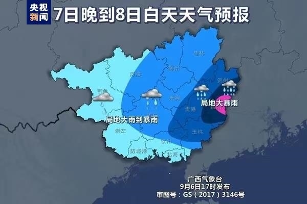 “??蓖>?殘渦將移入廣西 8日起大到暴雨局地大暴雨來(lái)襲