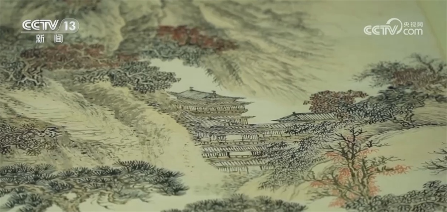 這幅《秋林書屋圖》,是清初四王之一、非常著名的畫家王翚在79歲的時(shí)候創(chuàng)作的,是珍貴的國(guó)家一級(jí)文物。這幅畫呈現(xiàn)的就是文人在山中茅屋當(dāng)中讀書的一個(gè)情景。雖然300多年的時(shí)間過(guò)去了,但是展開這幅畫,我們?nèi)匀豢梢钥吹椒浅ur明的色彩,蒼林翠竹與霜葉秋楓交相輝映,給我們帶來(lái)非常美的視覺享受。