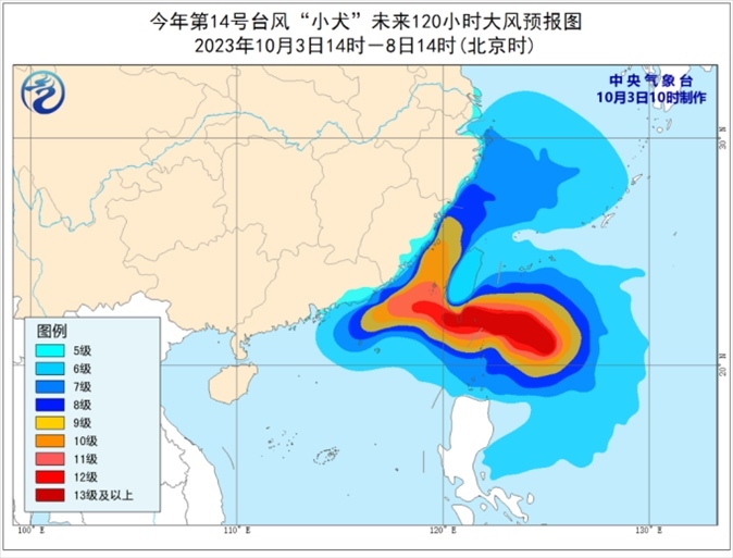 氣象專家提醒,臺風(fēng)“小犬”可能以強臺風(fēng)級強度登陸臺灣島南部沿海,將給我國東南海域及浙閩粵臺沿海地區(qū)帶來強風(fēng)雨天氣,尤其是大風(fēng)災(zāi)害風(fēng)險高。目前正值國慶假期,東南沿海地區(qū)旅游人員密集,請游客及當(dāng)?shù)鼐用裉岣呔瑁崆白龊梅婪洞胧?;風(fēng)雨天氣還將對假期返程交通帶來一定影響,建議公眾及時做好行程安排,關(guān)注氣象和交通部門發(fā)布的最新信息。
