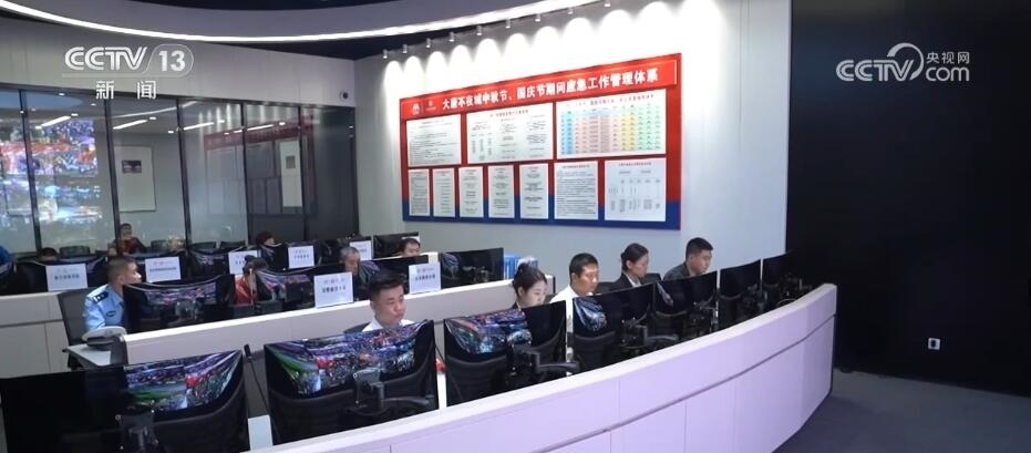 在大唐不夜城安保中心的指揮大廳里,記者看到,包括應急、城管、公安、交通等十余個單位都派出人員在這里聯合辦公,方便隨時調度。安保指揮中心的大屏幕上,實時顯示著關鍵點位的具體情況等多種信息。