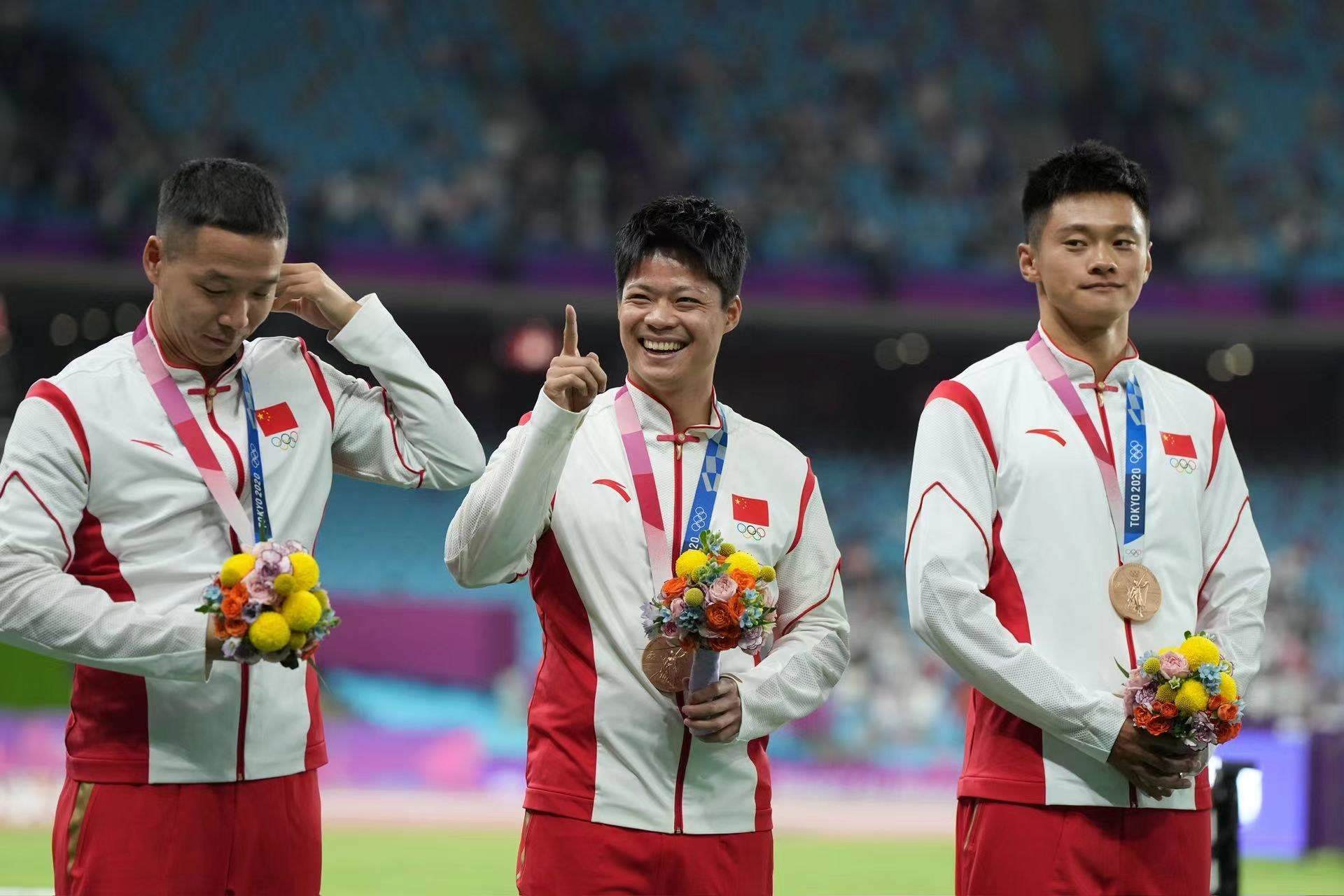 蘇炳添、謝震業(yè)、吳智強、湯星強參加了東京奧運會田徑男子4×100米接力決賽,并在比賽中第四個沖過終點。去年2月,國際體育仲裁法庭裁定英國運動員烏賈在東京奧運會期間違反了反興奮劑條例,取消英國隊男子4x100米接力成績并收回所獲銀牌,中國男子4x100米接力隊因此遞補獲得銅牌。這是中國男子4x100米接力隊首次在奧運會上獲得獎牌。