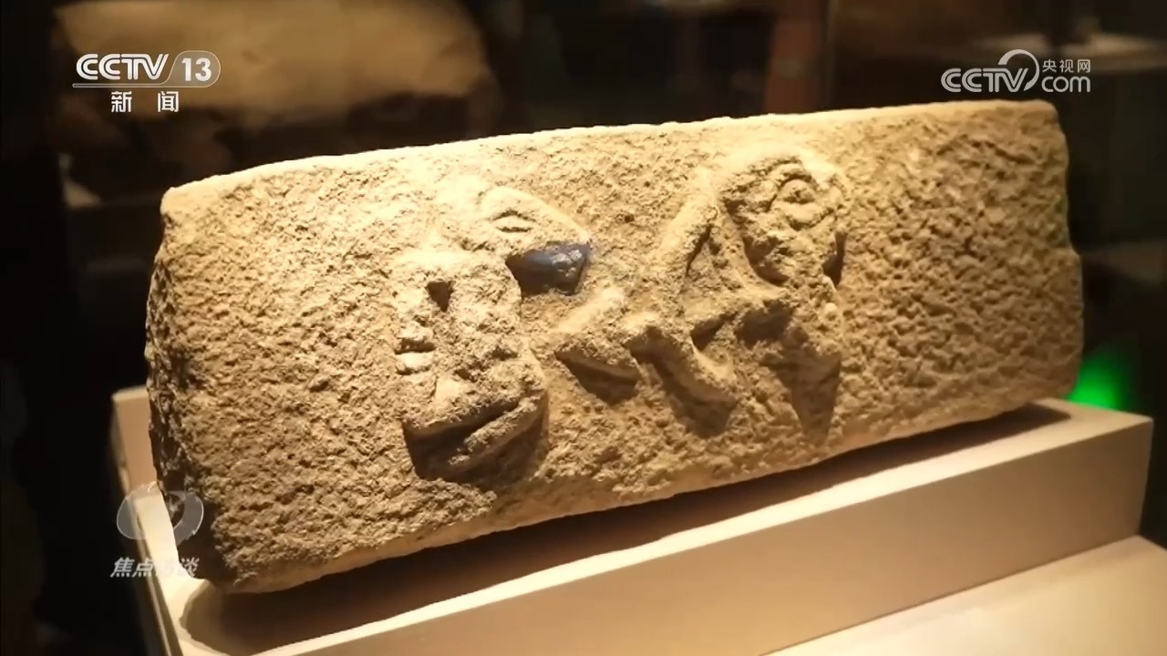 龜甲出土于河南省漯河市舞陽縣賈湖遺址,當(dāng)時(shí)遺址內(nèi)發(fā)現(xiàn)17例刻在龜甲、骨器上的符號(hào),內(nèi)容都與占卜相關(guān),被稱為賈湖刻符。符號(hào)圖畫為我們揭開了祖先們當(dāng)時(shí)的生活圖景?!叭松漶R石雕”出土于陜西榆林神木市石峁遺址,在距今約4000年前,先人們以浮雕的方式成圖,一人持弓箭射馬,弓、弦、箭一樣不少。