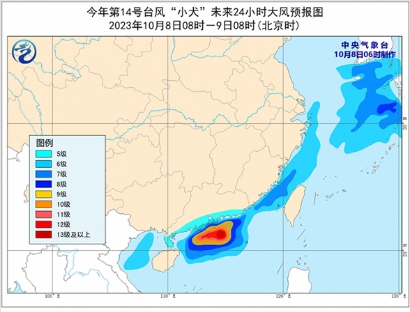 昨日,“小犬”給浙江東部、福建南部、廣東東部等地帶來明顯風(fēng)雨,廣東揭陽、汕頭局地大暴雨。預(yù)計未來24小時,受冷空氣和“小犬”共同影響,臺灣島東北部、廣東中部沿海、珠江口附近將有大到暴雨、局地大暴雨(100-150毫米);東海大部、臺灣海峽、南海北部、北部灣以及浙江沿海、福建沿海、廣東沿海將有6-8級、陣風(fēng)9-10級的大風(fēng),其中廣東沿海、南海北部的部分海域?qū)⒂?-11級、陣風(fēng)12-13級的大風(fēng),“小犬”中心經(jīng)過的附近海面風(fēng)力有12-14級,陣風(fēng)15-16級。