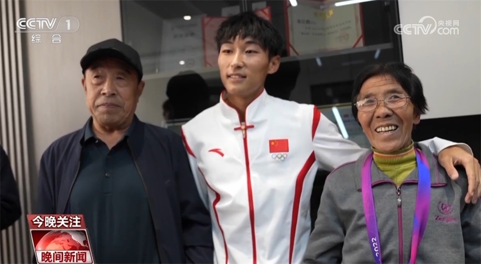 田徑比賽男子4×100米接力決賽中,第四棒陳佳鵬接棒時,中國隊稍微落后。憑借強大的后程加速能力,陳佳鵬在最后30米逆轉(zhuǎn)對手率先撞線,中國隊收獲金牌。奪冠后陳佳鵬回到老家,先后把金牌掛在了媽媽和奶奶的脖子上,合影時奶奶笑得合不攏嘴。