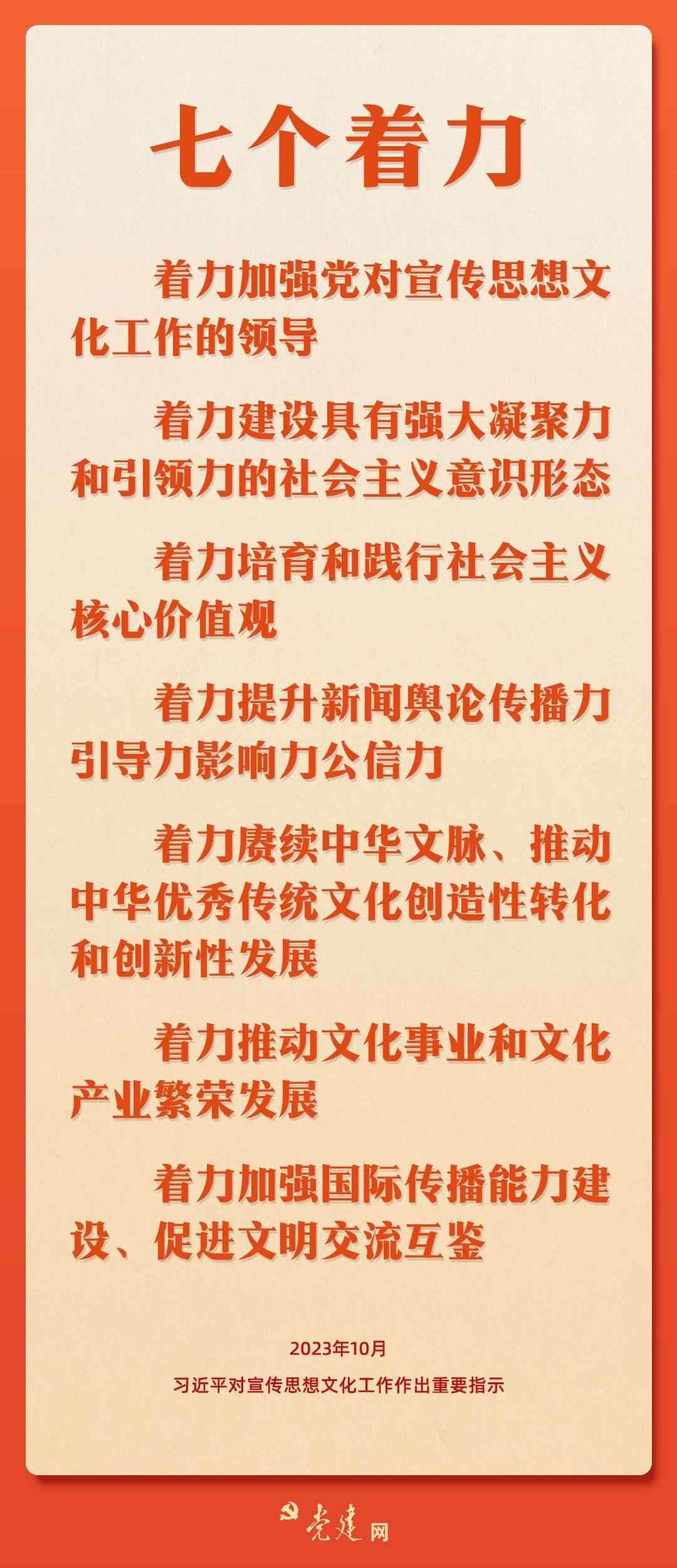 10月7日至8日,全國宣傳思想文化工作會(huì)議在京召開。會(huì)議傳達(dá)了習(xí)近平總書記對宣傳思想文化工作的重要指示,并首次提出習(xí)近平文化思想??靵硪粓D學(xué)習(xí)會(huì)議精神要點(diǎn)!