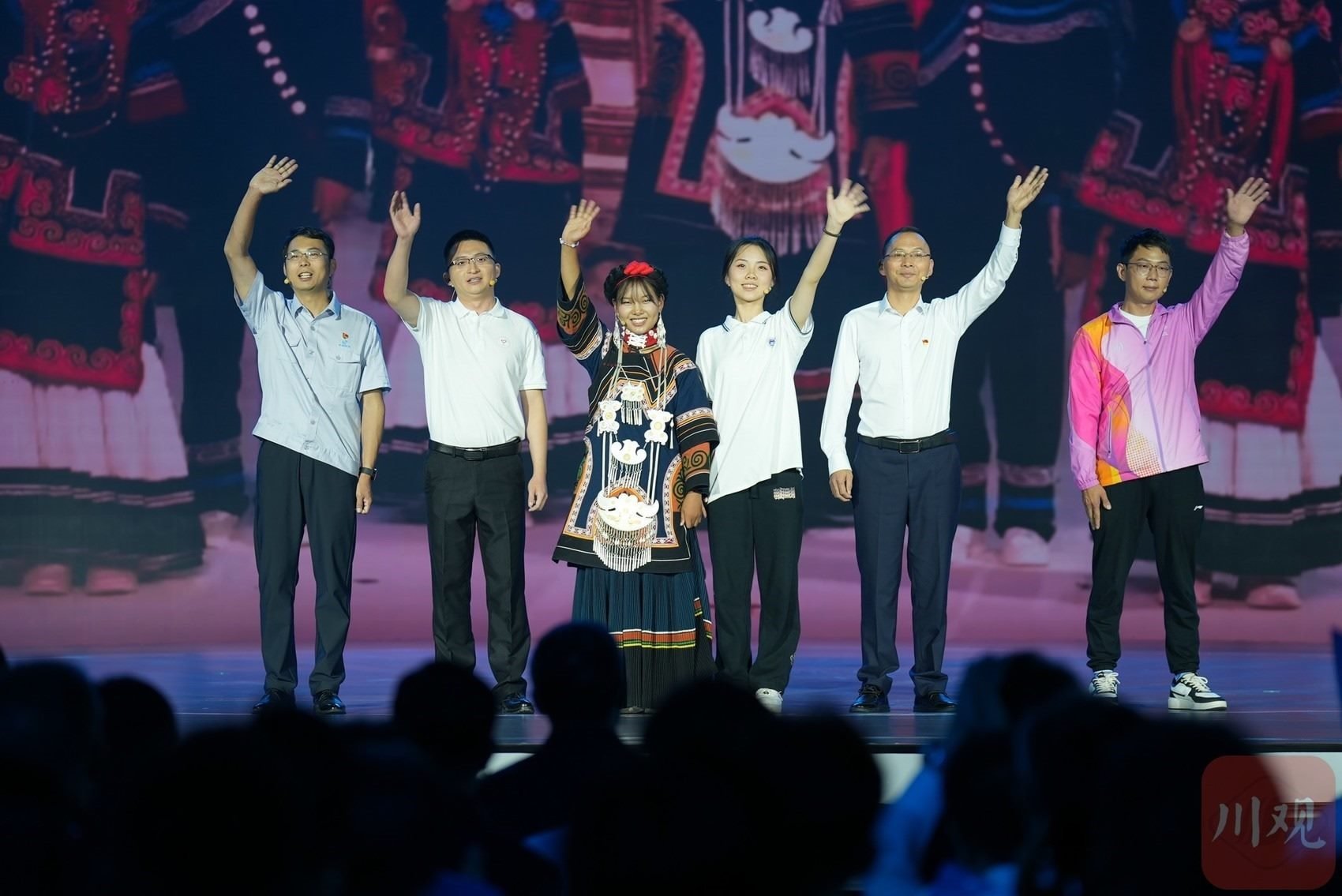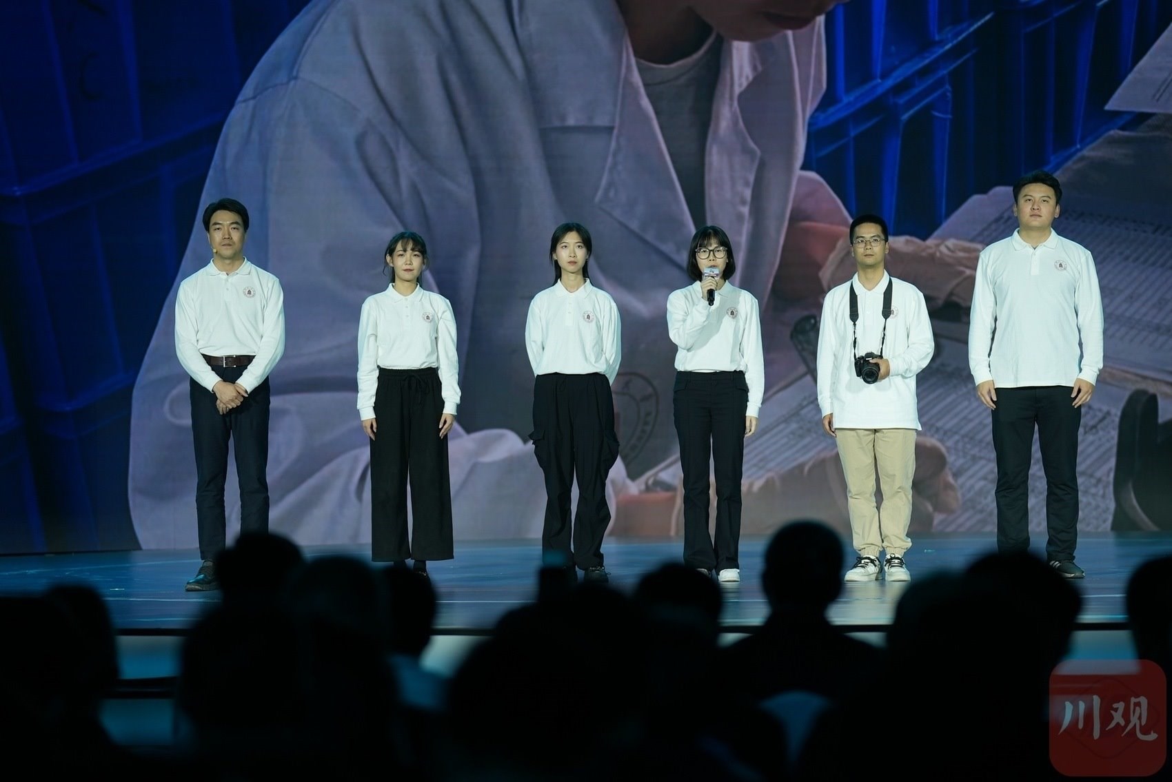 在 “錦水含章”篇章中,以歌曲《紅梅贊》引入,《江姐在川大》編劇冉詩(shī)媛、四川大學(xué)“江姐班”學(xué)生代表張鈺、“江姐紀(jì)念館”設(shè)計(jì)者段禹農(nóng)、第49屆南丁格爾獎(jiǎng)獲得者蔣艷和四川大學(xué)三星堆遺址考古隊(duì)隊(duì)長(zhǎng)黎海超等結(jié)合工作學(xué)習(xí)實(shí)踐,動(dòng)情講述傳承江姐精神矢志報(bào)國(guó)、援外抗疫展現(xiàn)大愛(ài)、創(chuàng)新賦能文博考古故事,生動(dòng)詮釋紅色傳承、文脈賡續(xù)、人民至上。
