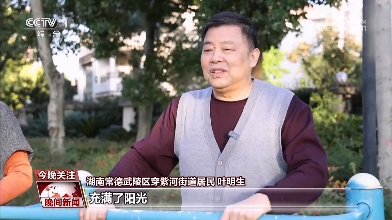 湖南常德武陵區(qū)穿紫河街道居民 葉明生:我們老年人現(xiàn)在的生活確實(shí)好過(guò)了,充滿(mǎn)了陽(yáng)光,社區(qū)到處都有了體育器材、有運(yùn)動(dòng)場(chǎng)所、有健身場(chǎng)所,現(xiàn)在我們玩得多開(kāi)心啊。