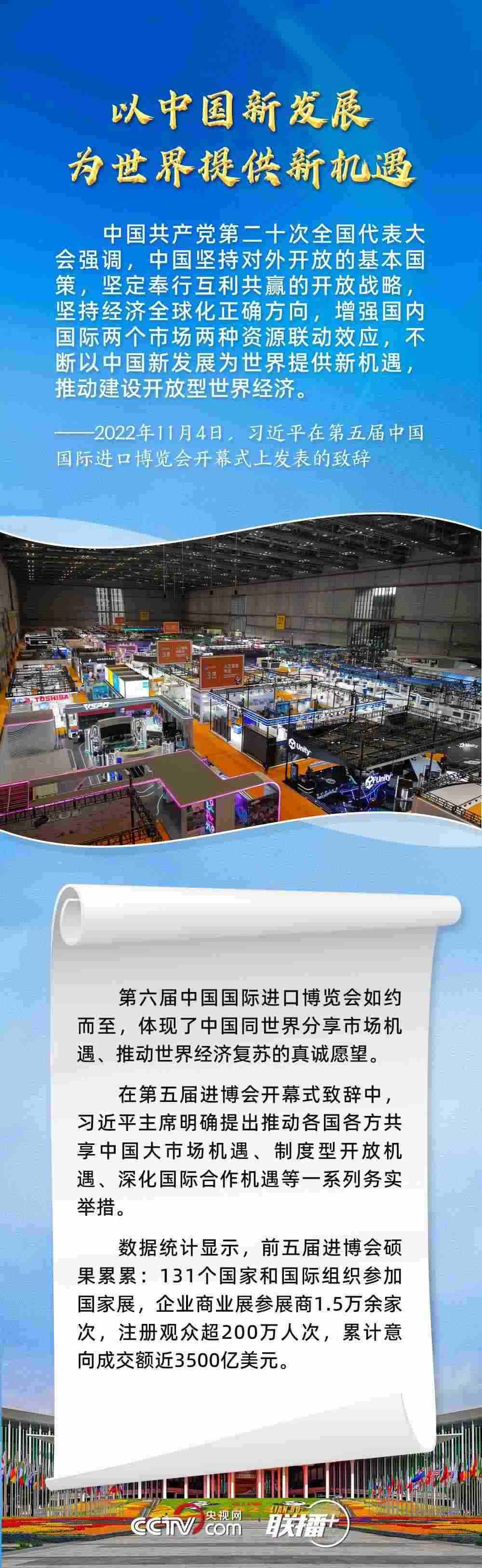 11月5日,第六屆中國國際進(jìn)口博覽會在上海開幕。習(xí)近平主席在致信中指出,2018年以來,進(jìn)博會成功舉辦五屆,依托中國大市場優(yōu)勢,發(fā)揮國際采購、投資促進(jìn)、人文交流、開放合作平臺功能,對加快構(gòu)建新發(fā)展格局和推動世界經(jīng)濟(jì)發(fā)展作出了積極貢獻(xiàn)。