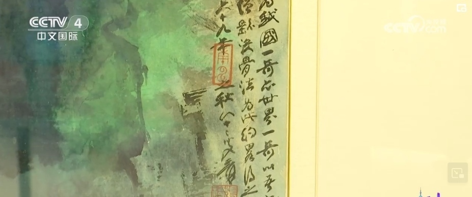 總臺央視記者 孫雨彤:這幅作品就是由張大千在1980年創(chuàng)作的《阿里山曉色》。張大千曾以“阿里山”為題材,創(chuàng)作出兩幀四尺整紙橫幅,這就是其中一件。畫上有題款“嘉義阿里山曉色為我國一奇,亦世界一奇”。