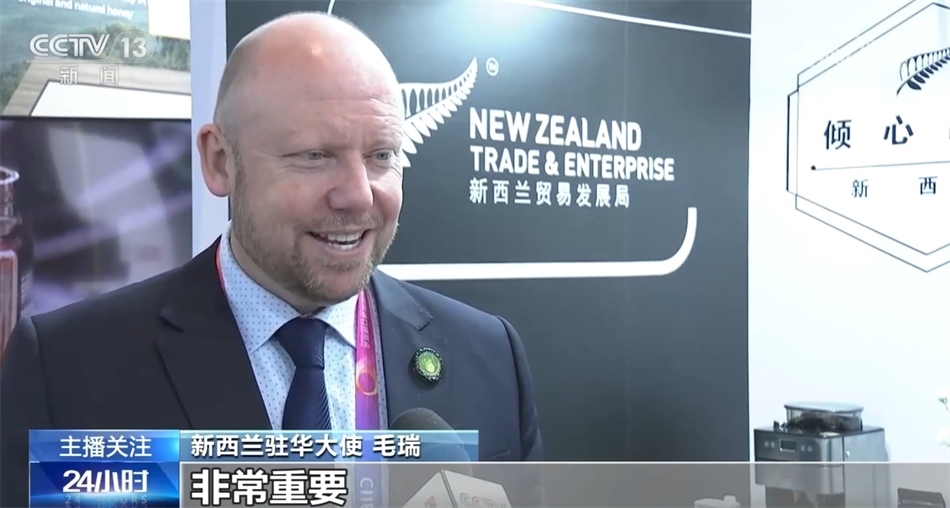 新西蘭駐華大使 毛瑞:這幾年參展的新西蘭公司體現(xiàn)一個(gè)強(qiáng)勁的趨勢,大多數(shù)參展企業(yè)活躍在食品和飲料等行業(yè),食品、飲料、健康成為一個(gè)趨勢,因?yàn)橹袊M(fèi)者越來越重視健康、重視新鮮、重視與自然環(huán)境的聯(lián)系。中國市場對(duì)是很多新西蘭企業(yè)來說非常重要,所以我希望幫助他們?cè)谶@個(gè)巨大且重要的市場上取得成功。