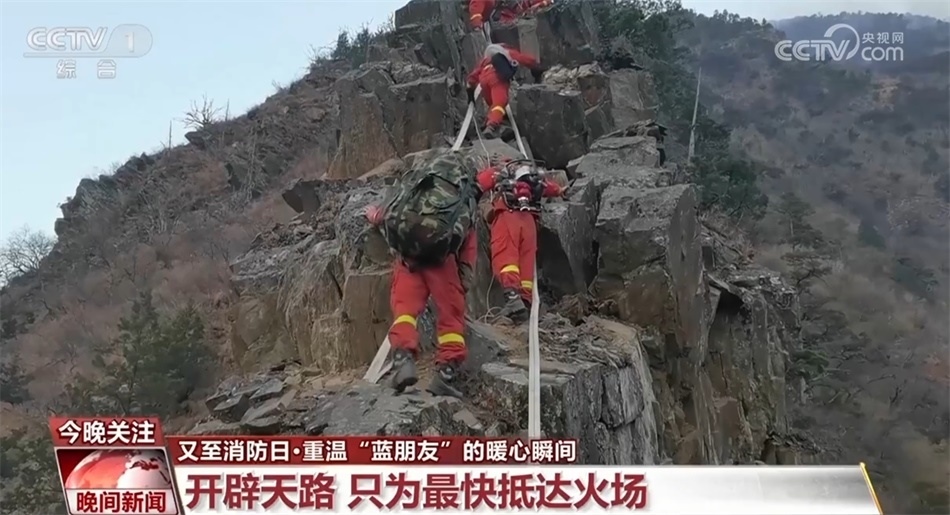 今年四月份,一處起火點在海拔3800多米的峭壁懸崖,為盡快滅火,最快的路線就是要翻越這段坡度超過70度的山脊。山脊寬不足米,左右兩側(cè)都是百米深的斷崖。負責(zé)開路的消防員只能用手指扣住石縫,雙腳登著石頭,把臉和軀干緊貼山體向上攀爬。在危險重重的絕壁上硬生生地開辟出了一條救援天路。二百多名消防員夜以繼日,在高海拔缺氧的環(huán)境下,每天背著將近40斤重的滅火機具往返于這條天路之上,奔赴火場。整整十個晝夜的撲救,山火終于被撲滅。