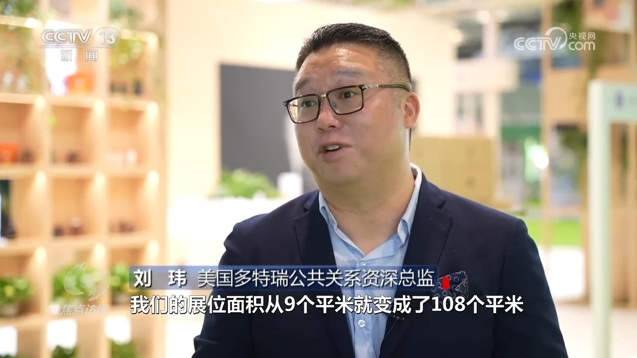 美國多特瑞公共關(guān)系資深總監(jiān)劉瑋:“因?yàn)橛辛说谝粚眠M(jìn)博會(huì),給了公司非常大的信心,所以從第二屆開始,我們的展位面積從9平米變成了108平米,第三屆的時(shí)候我們又拓展到了150平米,直到現(xiàn)在我們的整個(gè)面積達(dá)到了200平米,所以面積的增長帶來了非常好的收益。”