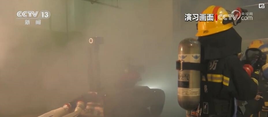 演習過程中,舉高噴射消防車從外部進行滅火作業(yè)的同時,多支消防救援小隊進入商場內部,在濃煙中實戰(zhàn)模擬火場搜救和滅火作戰(zhàn)。在救援人員的遙控指揮下,消防救援機器狗首先突入火場,利用身上加裝的煙氣成分分析儀、攝像頭等多種設備,實時監(jiān)測環(huán)境危險狀況,并對火場環(huán)境進行偵察。在大火猛烈燃燒、建筑物結構不穩(wěn)定情況下,消防救援人員遠程控制無人滅火機器人首先進入火場,進行前期滅火作業(yè)。為保障內攻救援人員安全,消防員綜合定位系統(tǒng)也投入使用。每名消防員都攜帶平板終端和定位信標,指揮員可以實時掌握進入火場人員的生命體征、實時位置。一旦救援人員遇險,系統(tǒng)能夠第一時間引導緊急救援小組展開營救行動。