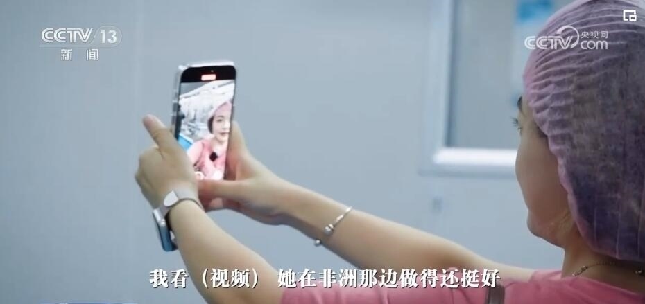 記者:現在方方(方菁)在給她的非洲客戶打視頻電話,來給她更直觀地看,這個紙尿褲在中國的工廠是怎么生產出來的。