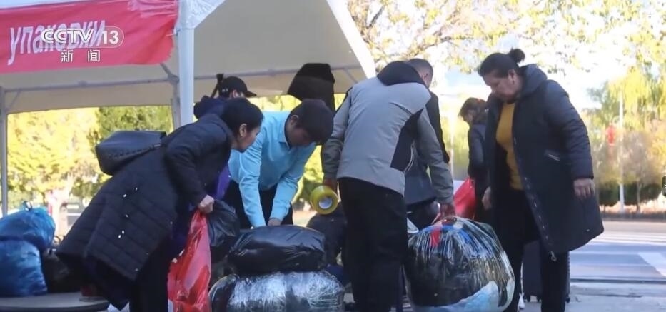 中哈霍爾果斯國際邊境合作中心職業(yè)打包人 努爾波力·阿布都艾利:這些人都是從哈薩克斯坦、烏茲別克斯坦、俄羅斯、(吉爾吉斯斯坦)這些國家來這個合作區(qū)(中心)里面買東西,買衣服、西裝、鞋子,一天來幾百人的這個地方,現(xiàn)在人越來越多,我每天就這樣打包的,一天(要打)六十包,(用掉)兩箱子膠帶呢。