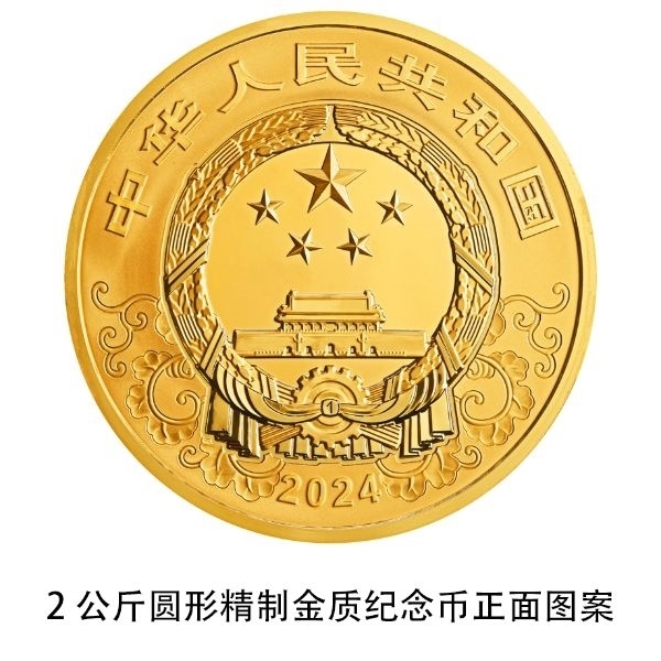 2公斤圓形金質(zhì)紀(jì)念幣為精制幣,含純金2公斤,直徑110毫米,面額20000元,成色99.9%,最大發(fā)行量50枚。